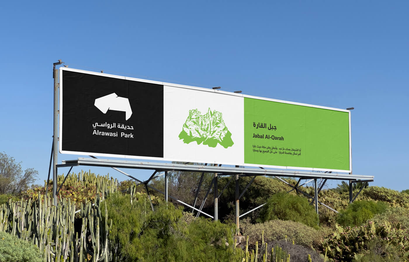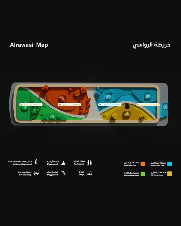 We developed visual storytelling elements that connect the park's identity to the "Al-Rawasi" (mountain) metaphor, creating educational moments throughout the visitor journey.